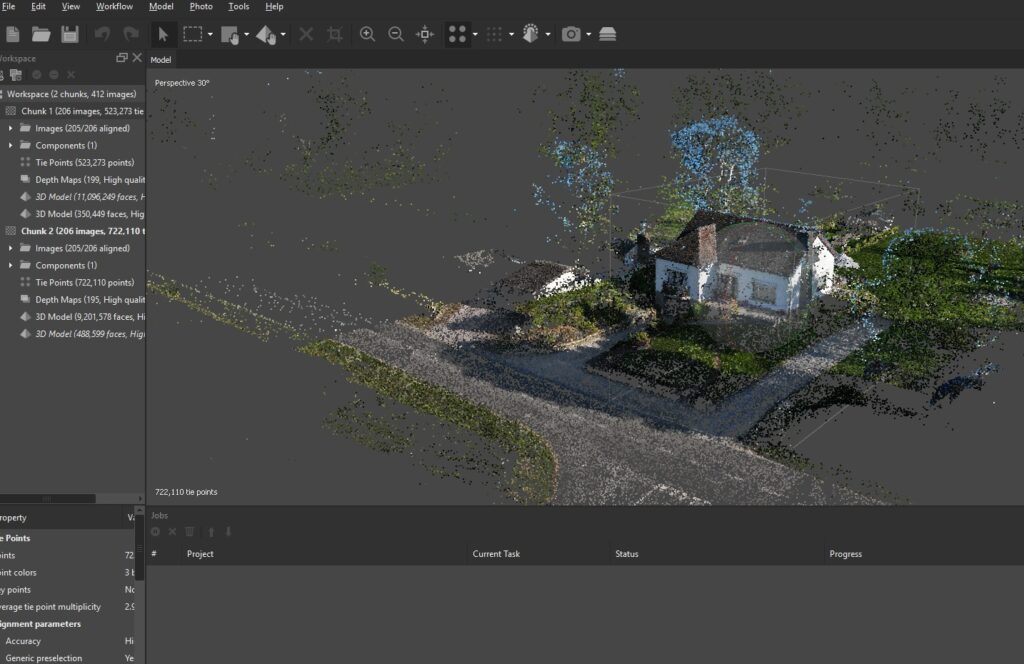 Une fois les levés de terrain effectués, les photos sont traitées grâce à la photogrammétrie. Ce procédé transforme les centaines de photos en un modèle 3D réaliste, détaillé et navigable.